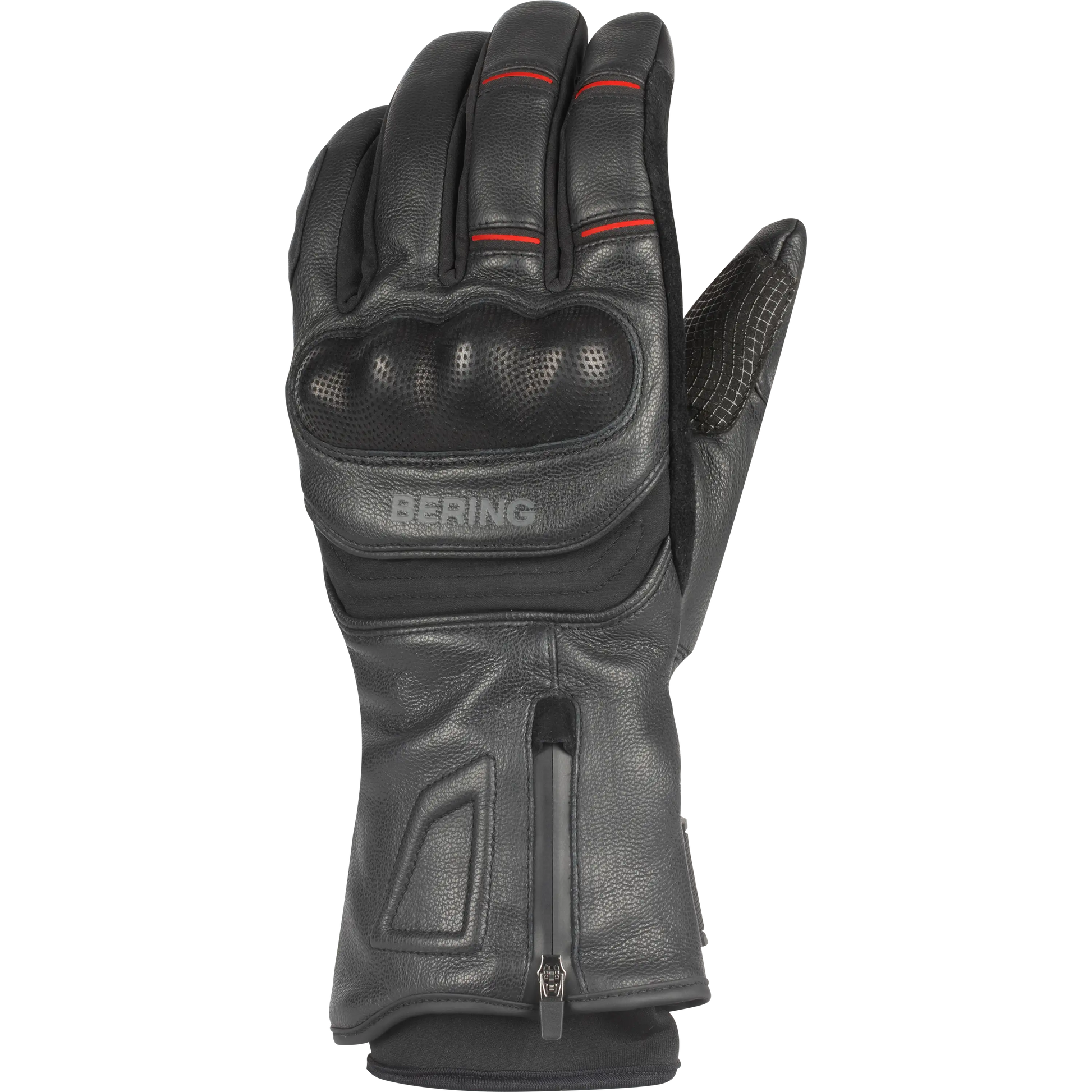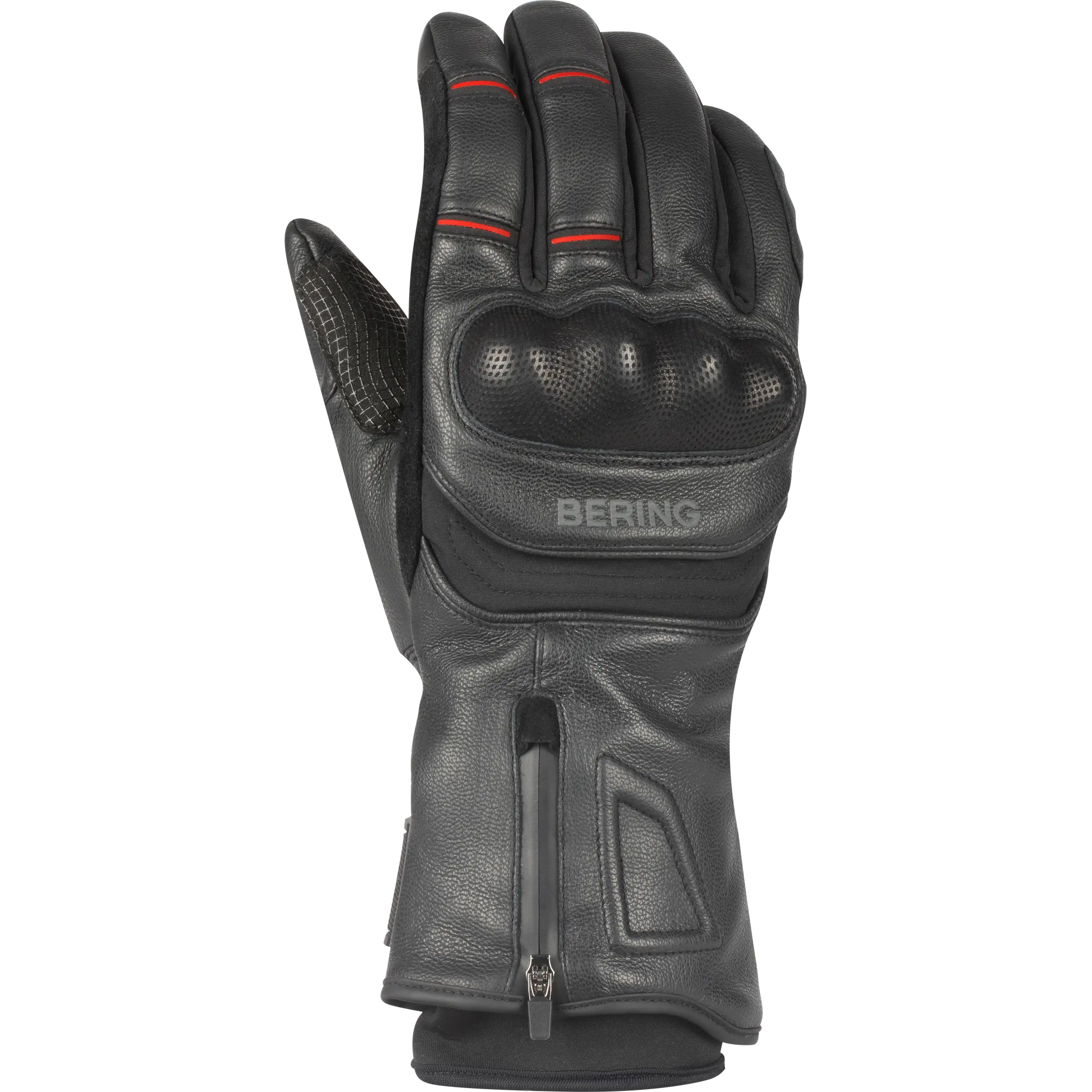 Les gants de moto HALIFAX de BERING, fabriqués en cuir de chèvre et en Softshell, sont équipés d'une membrane étanche pour affronter toute condition météorologique. Leur sensor system garantit l'utilisation d'appareils tactiles, tandis que la double serrage au poignet et la manchette longue assurent un ajustement parfait. Le soufflet et le zip au poignet facilitent leur utilisation.